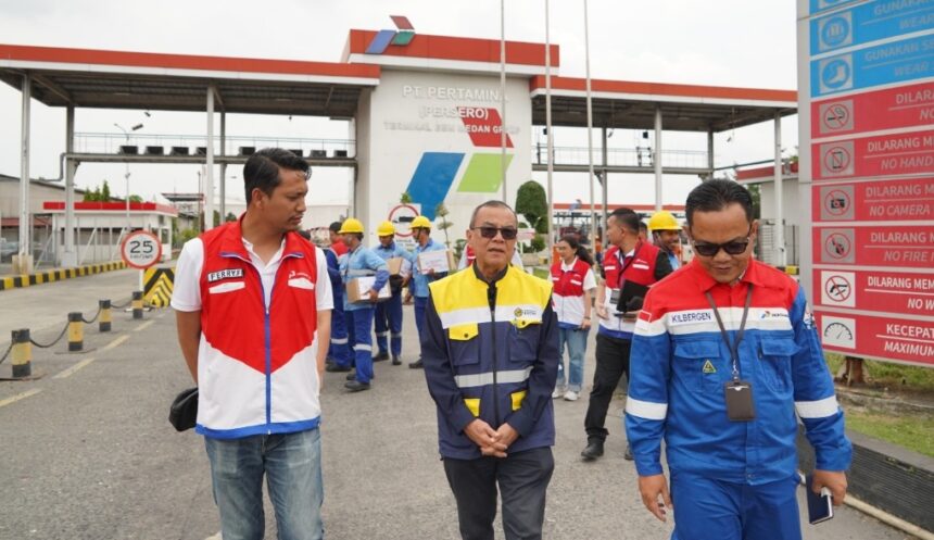 Kunjungan kemudian dilanjutkan ke Fuel Terminal Medan Group guna memastikan kesiapan infrastruktur penyaluran BBM, mulai dari proses penerimaan, penyimpanan, hingga distribusi ke berbagai wilayah.