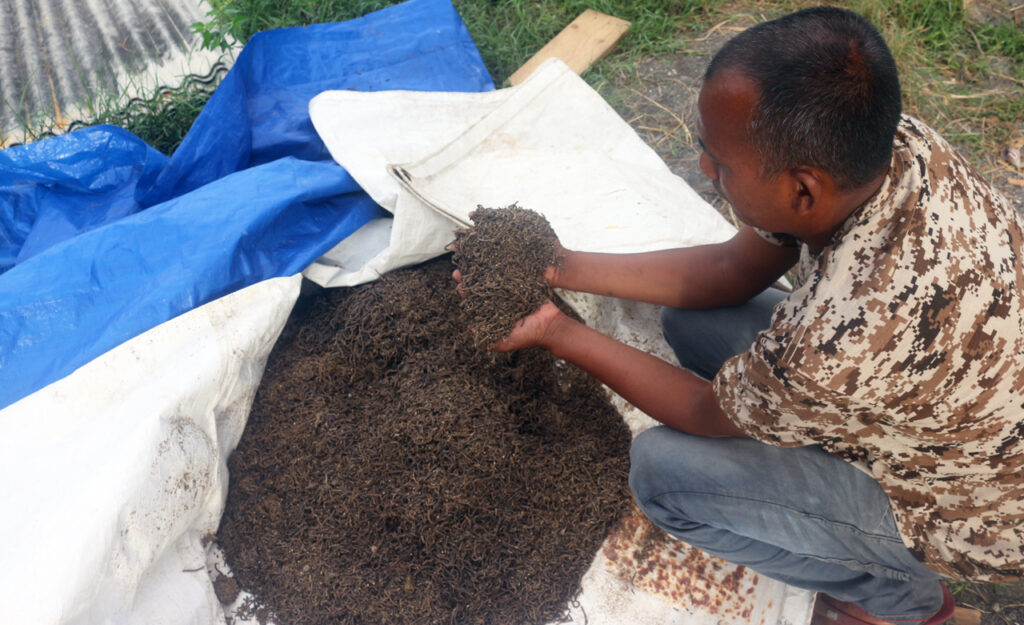 Dalam tahun 2025, pakan buatan ini sudah diuji lab sebanyak dua kali. Pada uji lab awal tahun, kandungan proteinnya telah mencapai lebih dari 37%, sedangkan pada uji lab yang dilakukan baru baru ini, kandungan protein telah meningkat menjadi lebih dari 40%. “Dalam tahun ini, sudah dua kali uji lab. Dilakukan oleh orang (PT)Pertamina. Pertamina yang kirim dan yang menanggung semua biaya” katanya.